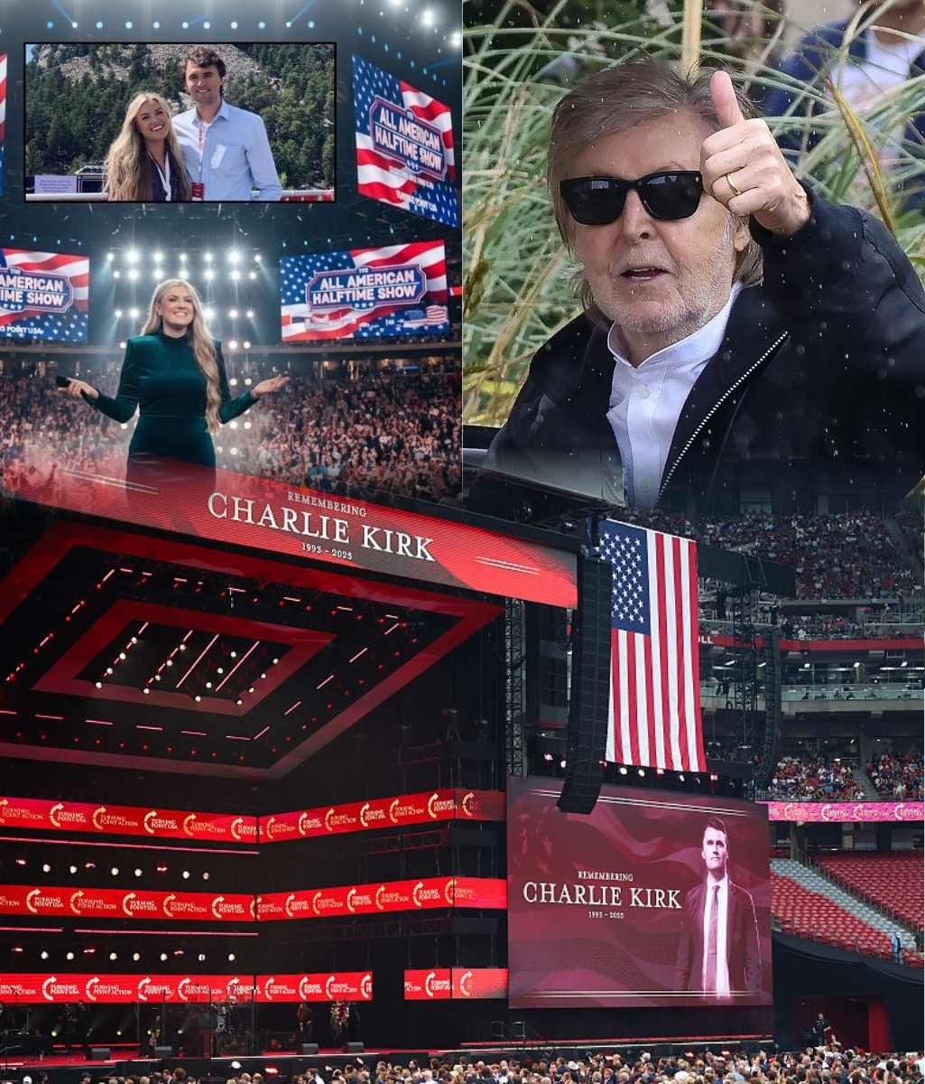 Paul McCartney, the living legend of music, has pledged an astonishing $20 million to Erika Kirk’s All American Halftime Show, the faith-driven, patriotic tribute created in honor of her late husband, Charlie Kirk. Within minutes, the news ricocheted across headlines, social feeds, and even the halls of Washington. It was not just an act of generosity. It was a message.