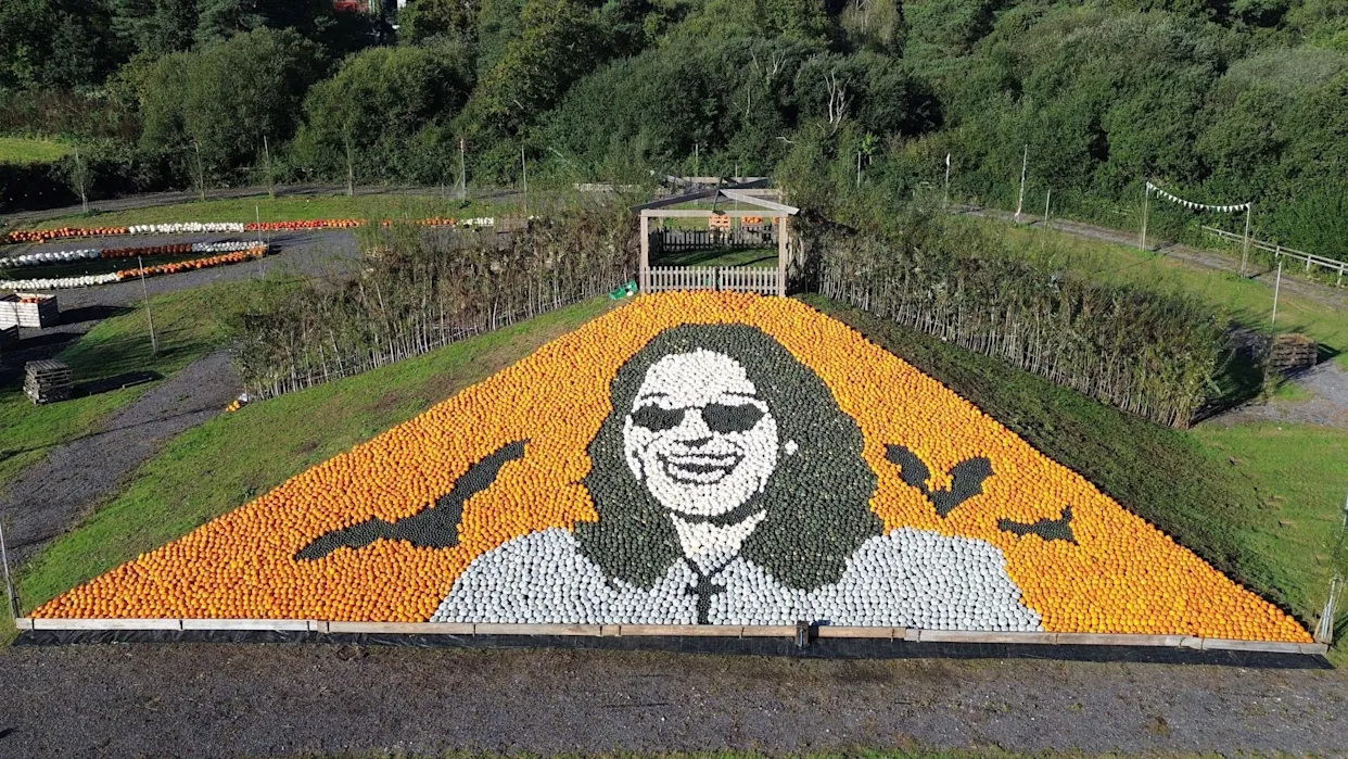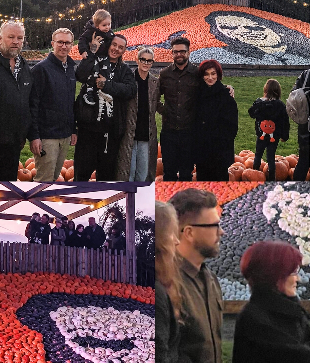 💬 “He would’ve loved this,” Sharon murmured, her voice barely above a whisper as she stopped before the centerpiece — a towering mural of Ozzy’s face, created from over 10,000 pumpkins and squashes. The likeness was extraordinary. His eyes, shaped from dark gourds, seemed to shimmer with life. The grin — mischievous, familiar — glowed as the setting sun struck the orange canvas behind it. The tribute, chosen by public vote, was both grand and humble: a portrait made not of stone or steel, but of earth and harvest, of things that grow and fade and return again.